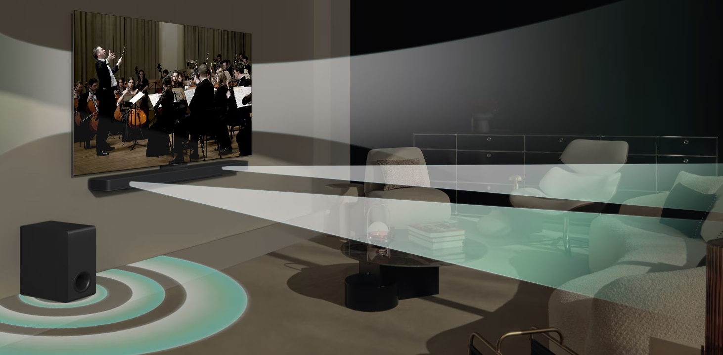 Sunetul, spectrul audio si tonurile distincte ale LG Soundbar si LG TV se completeaza perfect, creand o experienta acustica impresionanta si captivanta.