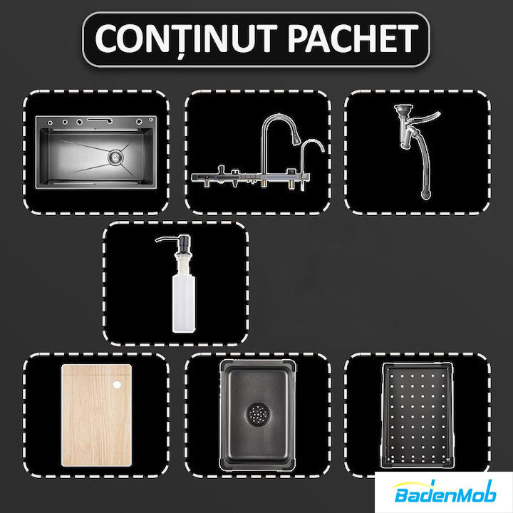 Set chiuveta multifunctionala smart, inox, BadenMob