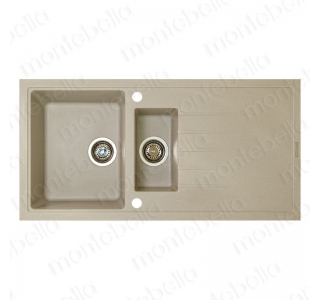 Гранитная кухонная мойка с большой основной и дополнительной малой чашами. Минимальная ширина тумбы - 600 мм.Глубина основной чаши - 205 мм.