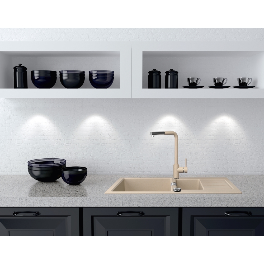 Baterie monocomandă, Sirius, duș extractibil monojet, cartuș discuri ceramice, crom/avena