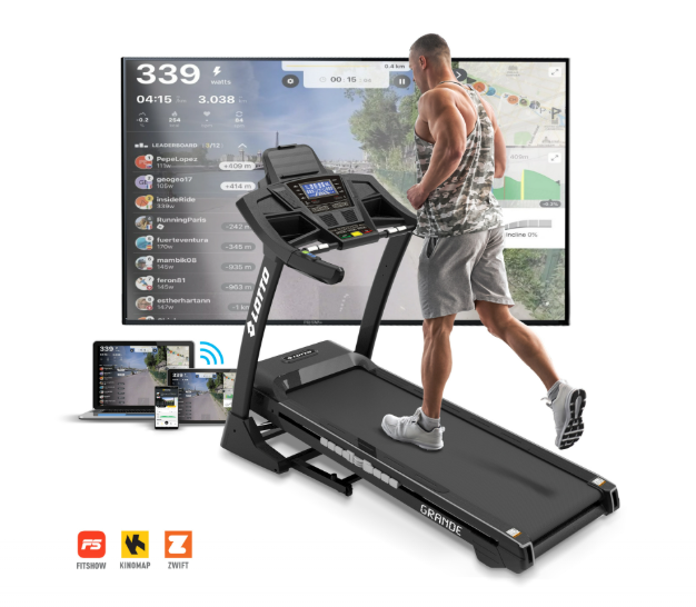 Bucură-te de sunetul imersiv al antrenamentelor cu boxele integrate, iar opțiunile de depozitare, precum suportul pentru sticlă/pahar, completează funcționalitatea acestei benzi de alergat. Cu 95% asamblată în cutie, deplierea automată și rotilele de transport pentru ușurința în manipulare, Lotto Grande este partenerul tău perfect în călătoria către o stare de sănătate și formă fizică optimă.