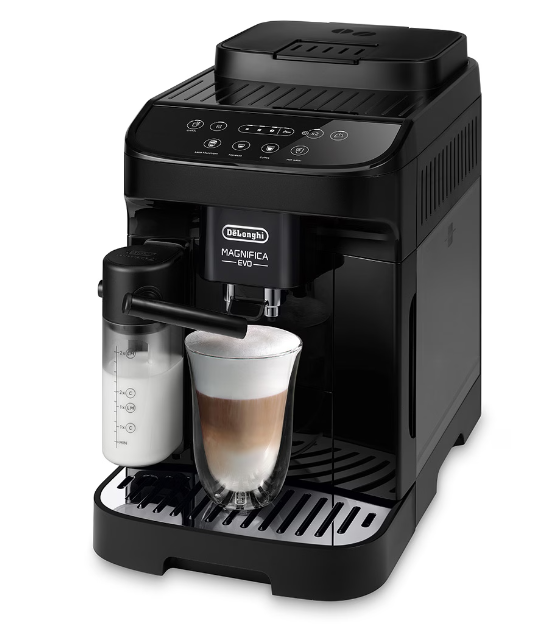 Magnifica Evo este un espressor automat, usor de utilizat, cu un design modern si elegant. Bucura-te de experienta incantatoare a cafelei din confortul propriei locuinte cu De'Longhi Magnifica Evo.