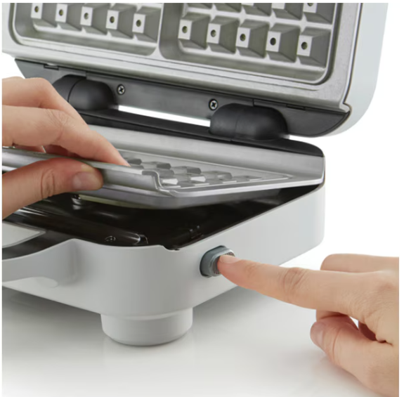 | Functii / Optiuni | Placi detasabile; Indicator luminos; Sistemul unic cu clapeta permite vafelor sa creasca in timpul coacerii si de asemenea are o a doua functie ca sistem de blocare pentru o depozitare sigura si ordonata |