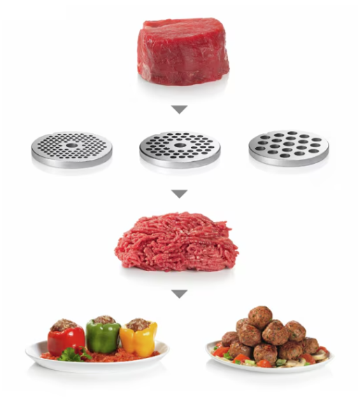 Ai meniu complet cu un singur aparat: carne proaspata pentru chiftele, lasagna sau tartar, legume pentru chiftelute, carnati proaspteti facuti in casa sau chiftele kebbe - masina de tocat carne ProPower MFW67440 de la Bosch va deveni partenerul tau preferat in bucatarie.