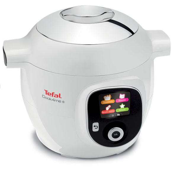 Multicookerul inteligent Tefal Cook4Me+ dispune de un panou de control intuitiv pentru a te ghida prin cele 4 meniuri ale sale: Ingrediente, Retete, Manual, Favorite. Cook4Me+ iti ofera solutia pentru mese delicioase, rapide si usoare. Descopera noi arome de fiecare data: alege unul dintre cele 6 programe de gatit si 150 de retete presetate, usor de preparat. Urmareste instructiunile pe ecran, detaliate pas cu pas si savureaza preparate excelente. Multicookerul adapteaza automat gatitul in functie de numarul de portii, tipul de ingrediente sau greutatea acestora.