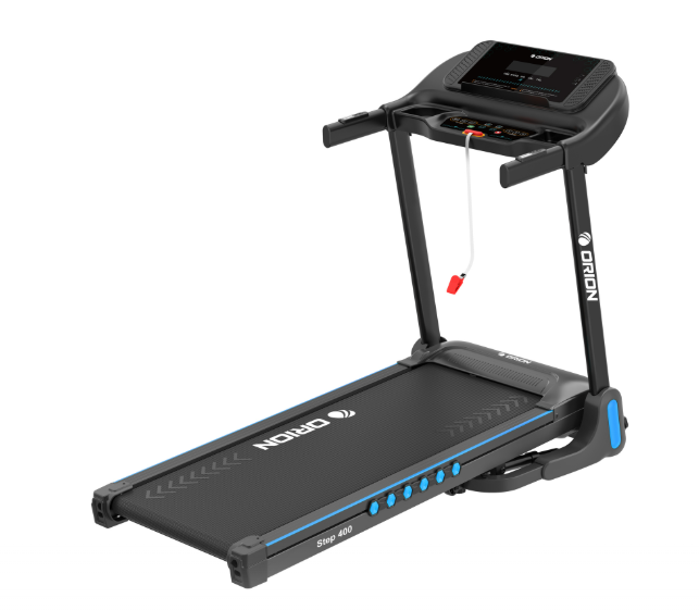 - Banda de alergat electrică Orion Step 400 este un echipament de ultimă generație pentru uz casnic, ideal pentru antrenamente complete și variate direct în confortul propriei locuințe. Cu un design compact și pliabil, se potrivește perfect chiar și în spații reduse, fiind ușor de depozitat atunci când nu este utilizată.