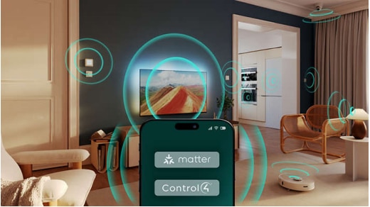 Control perfect Compatibilitatea perfecta cu Matter si Control inseamna ca poti integra cu usurinta acest televizor Ambilight 4K in reteaua de locuinta inteligenta existenta. |