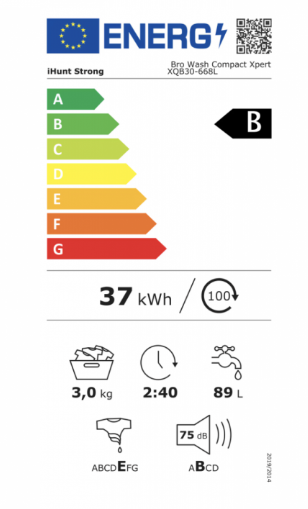 | Потребление энергии/100 стирок | 37 кВтч |