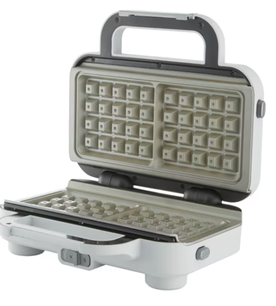 | Functii / Optiuni | Placi detasabile; Indicator luminos; Sistemul unic cu clapeta permite vafelor sa creasca in timpul coacerii si de asemenea are o a doua functie ca sistem de blocare pentru o depozitare sigura si ordonata |