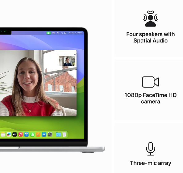 Totul arata si suna uluitor cu o camera FaceTime HD de 1080p, trei microfoane si sase difuzoare cu Audio spatial.