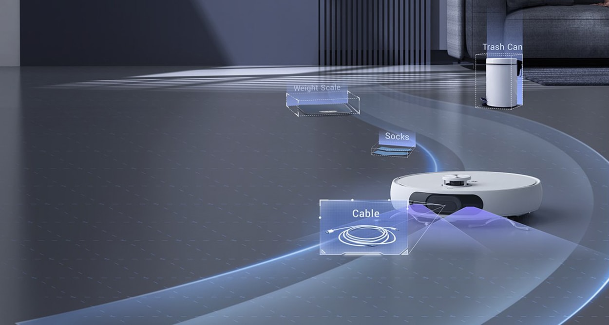 RS2 identifica, detecteaza si evita obiectele obisnuite de acasa imprastiate pe podeaua dvs., astfel incat sa nu tina mizeria, sa nu va aspire sosetele si sa nu se blocheze.