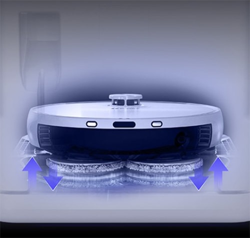Cu senzorul de tip podea de pe dispozitiv, RS2 detecteaza covoarele in timp real. Cand are tampoanele umede pentru mop, se indeparteaza inteligent de zona covorului pentru a se concentra pe curatarea podelelor dure.