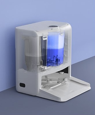 Docul poate umple automat rezervorul de apa al unui RS2 in asteptare cu apa proaspata, astfel incat robotul sterge intotdeauna cu suficienta apa curata pentru a evita mirosul.